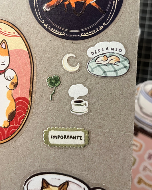 Planilla de stickers de la suerte 🍀🐈 vinil con textura