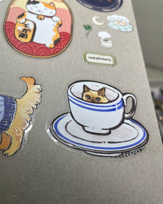 Sticker individual Gatito en taza ☕
