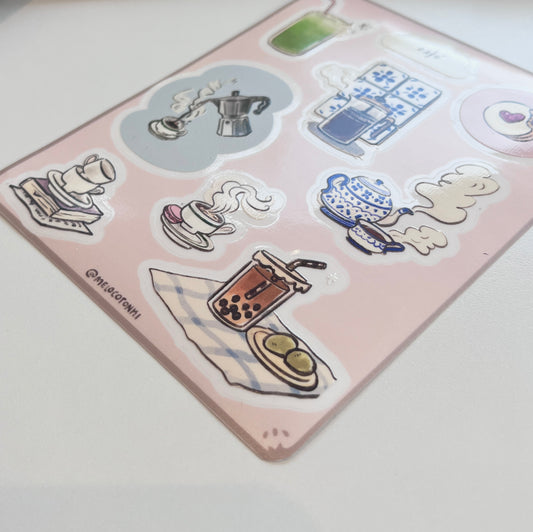 Planilla de Stickers de Café & té ☕ 🍵 vinil, con textura